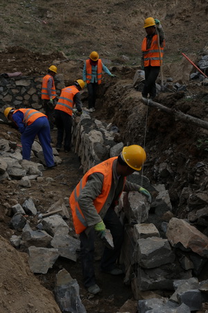 下圖為該工程的部分原地形地貌及施工場(chǎng)景