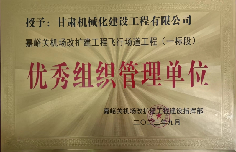 嘉峪關(guān)機場改擴建工程飛行場道工程 (一標段)優(yōu)秀組織管理單位